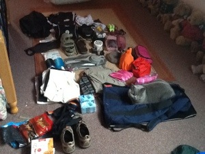 I tipped everything I thought I might need from the drawers onto the spare bed. I then filtered onto the floor, trying desperately to remember what was essential last time and what I carted around and did not wear. I’m definitely taking less stuff. I will have to carry the thing and I have distant memories of having to drag the bag down stairs and along hotel corridors as it was so bleeding heavy. I’m not falling for that again. So that’s it!